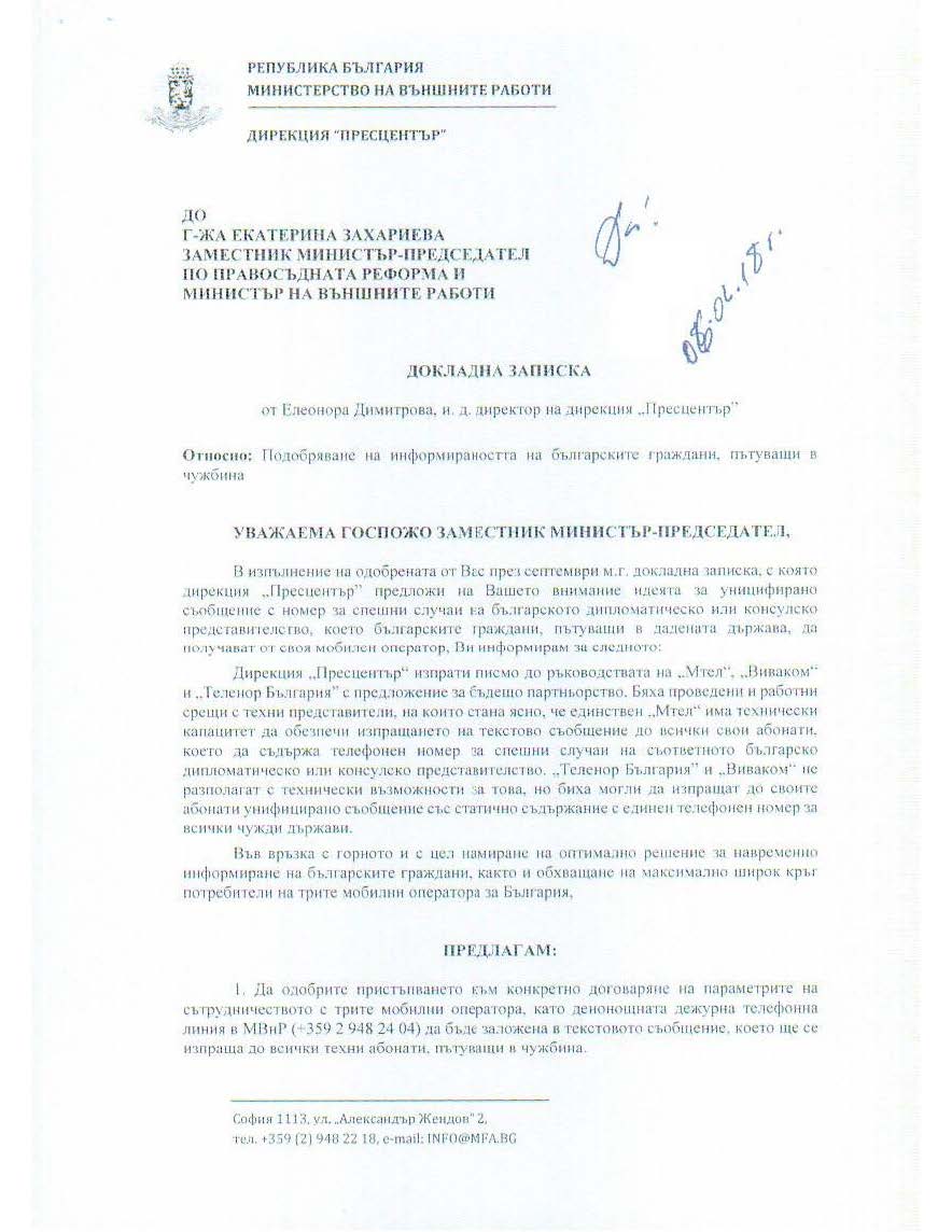на база Pathfinder за събиране и обработка на материали на местните печатни издания.Главна задача – доклад за възможни планирани действия против